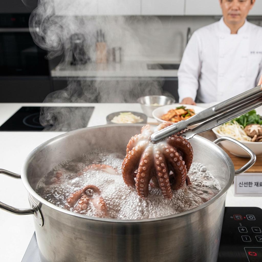 끓는 물에 소주 1큰술을 넣고 주꾸미를 30초만 살짝 데치세요. 비린내가 사라질 뿐만 아니라 조리 시 물이 생기지 않아 양념이 겉돌지 않습니다.