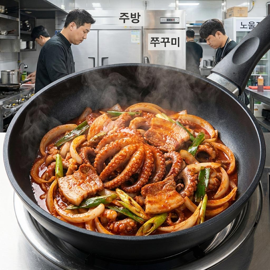 주꾸미와 삼겹살의 놀라운 영양학적 상호보완 원리를 아시나요? 타우린이 포화지방을 억제하는 생화학적 비밀과 50대 대사증후군 예방을 위한 건강 조리법을 공개합니다.