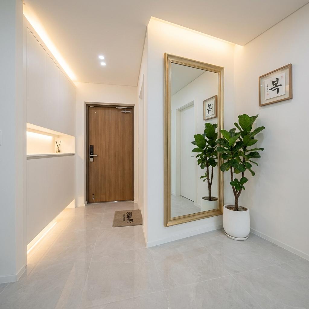 사람 부르면 10만 원, 직접 하면 5천 원! 힐스테이트 기흥 34평 현관에 재물운 부르는 풍수 거울 위치와 셀프 설치 비용, 장단점 비교까지 모두 공개합니다.