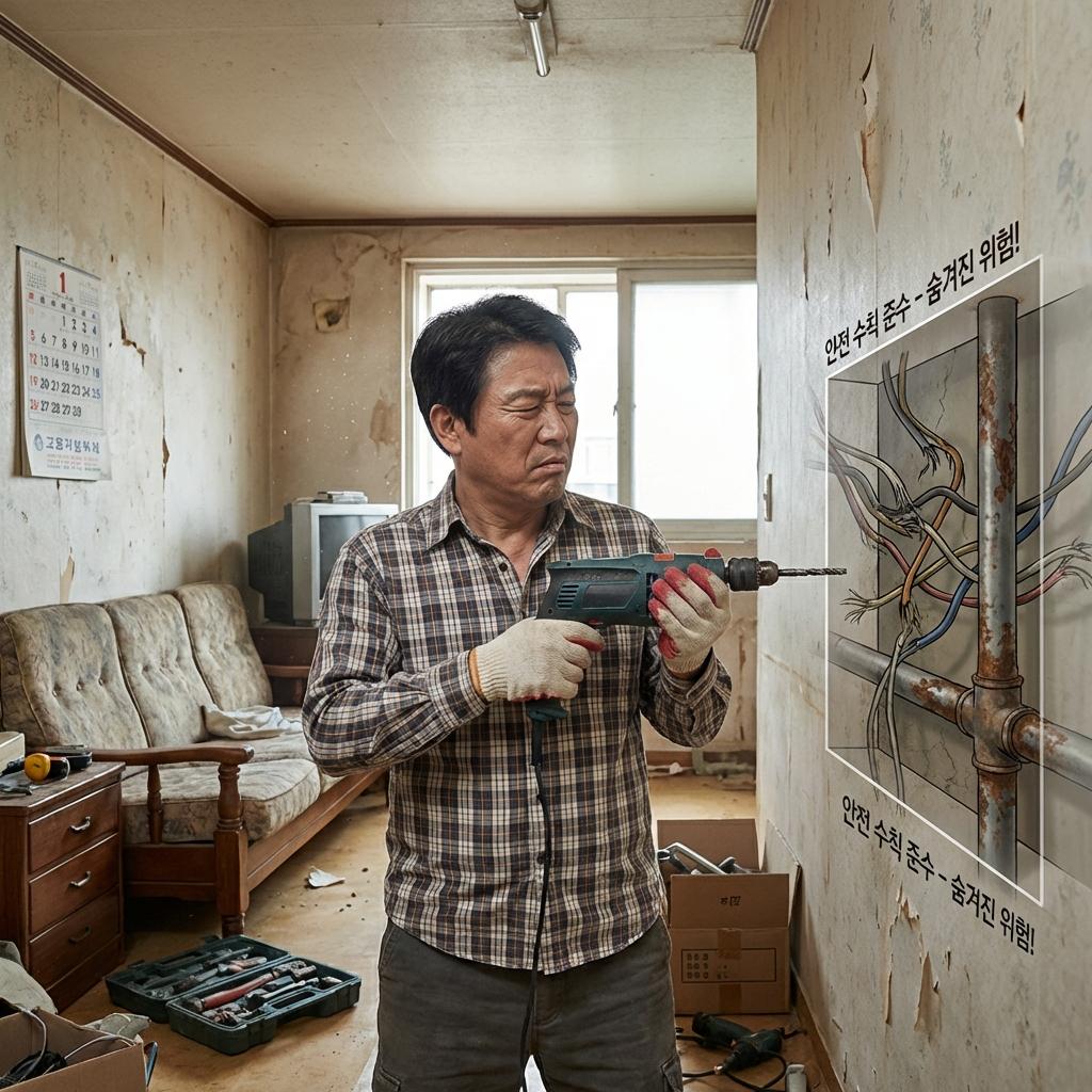 오래된 집에 거주하신다면 셀프 수리 시 배관 부식이나 전기 배선 노후화 문제를 주의해야 합니다. 벽을 뚫기 전에는 반드시 배선이나 배관이 지나가는 자리가 아닌지 확인해야 합니다. 겉보기엔 간단한 작업이라도 예상치 못한 문제가 발생할 수 있으니 항상 안전을 최우선으로 생각해야 합니다.